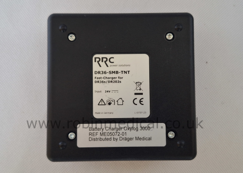 The Dräger ME05072-01 is a genuine OEM battery charger and power supply unit designed for use with the Dräger Oxylog 3000 and Oxylog 3000 Plus transport ventilators. This charger delivers reliable and regulated power for charging internal batteries or operating the ventilator while connected to mains electricity. Every unit comes with its power-supply.