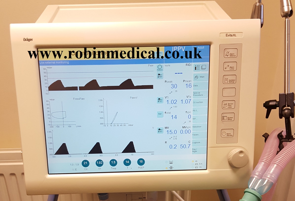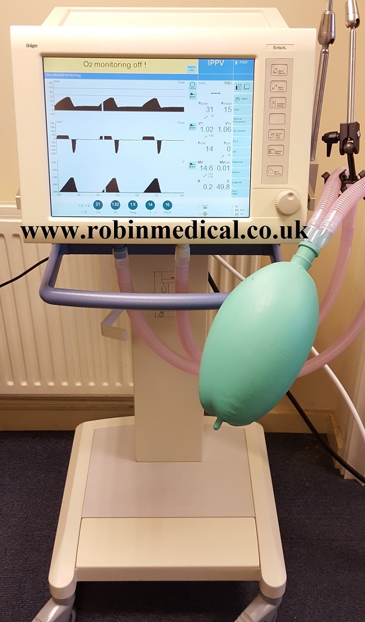 Drager EVITA XL Ventilators for ICU use, both are in good physical and very good operational condition, the 2 units actual photos are displayed.