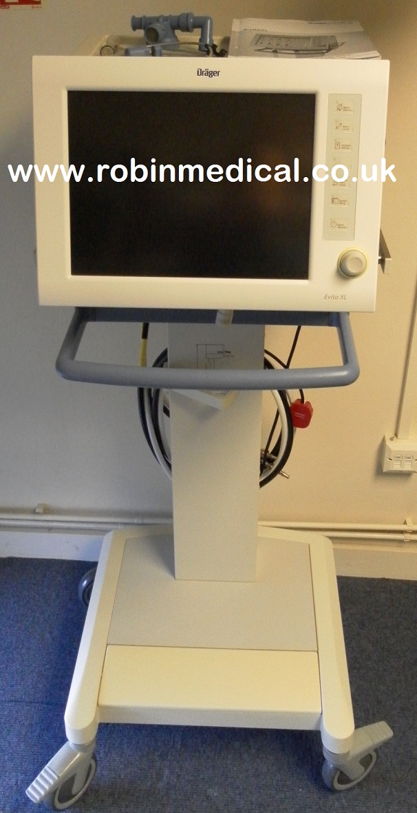 Drager EVITA XL Ventilator for ICU use with capnography, in very good physical and operational condition, its actual photos displayed.