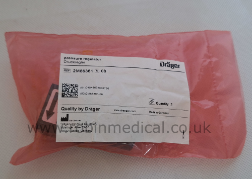 This Dräger 2M86361 Pressure Regulator is the genuine OEM part used in the Oxylog 3000 ventilator series. It precisely controls the oxygen cylinder or pipeline supply pressure, ensuring a stable 0.5 bar delivery for safe and accurate ventilation. Constructed to Dräger’s medical-grade standards, it’s essential for reliable and compliant respiratory support.