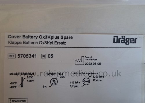 The Dräger 5705341 Battery Cover is a genuine OEM spare part designed specifically for the Oxylog 3000 Plus ventilator. It protects the battery compartment from dust, moisture, and damage during use and transport, preserving battery security and device integrity.