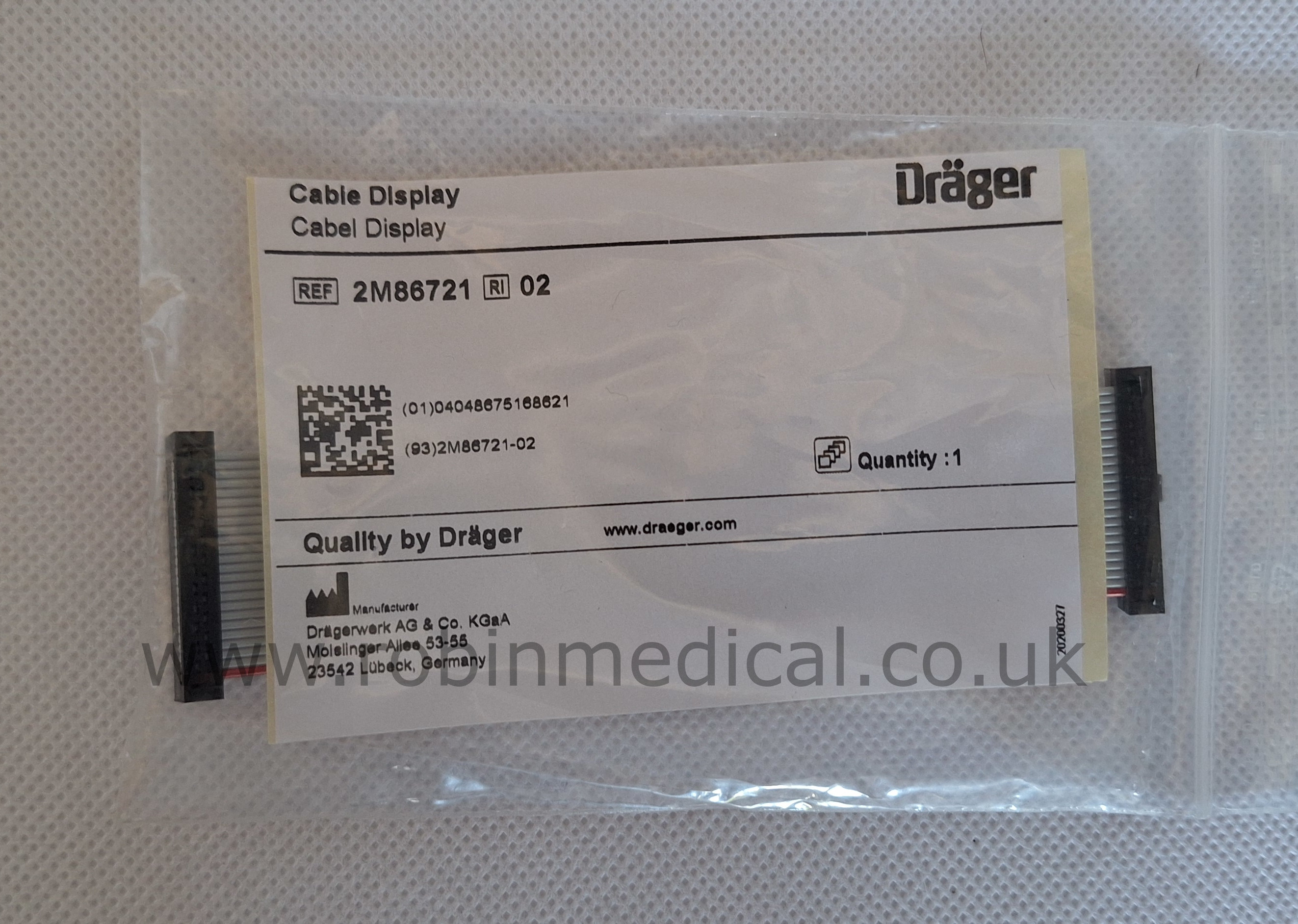 Dräger Display Cable REF: 2M86721 is a Brand New OEM replacement cable for the Dräger Oxylog 3000/3000 plus display module. Ensures stable screen connectivity and reliable performance.