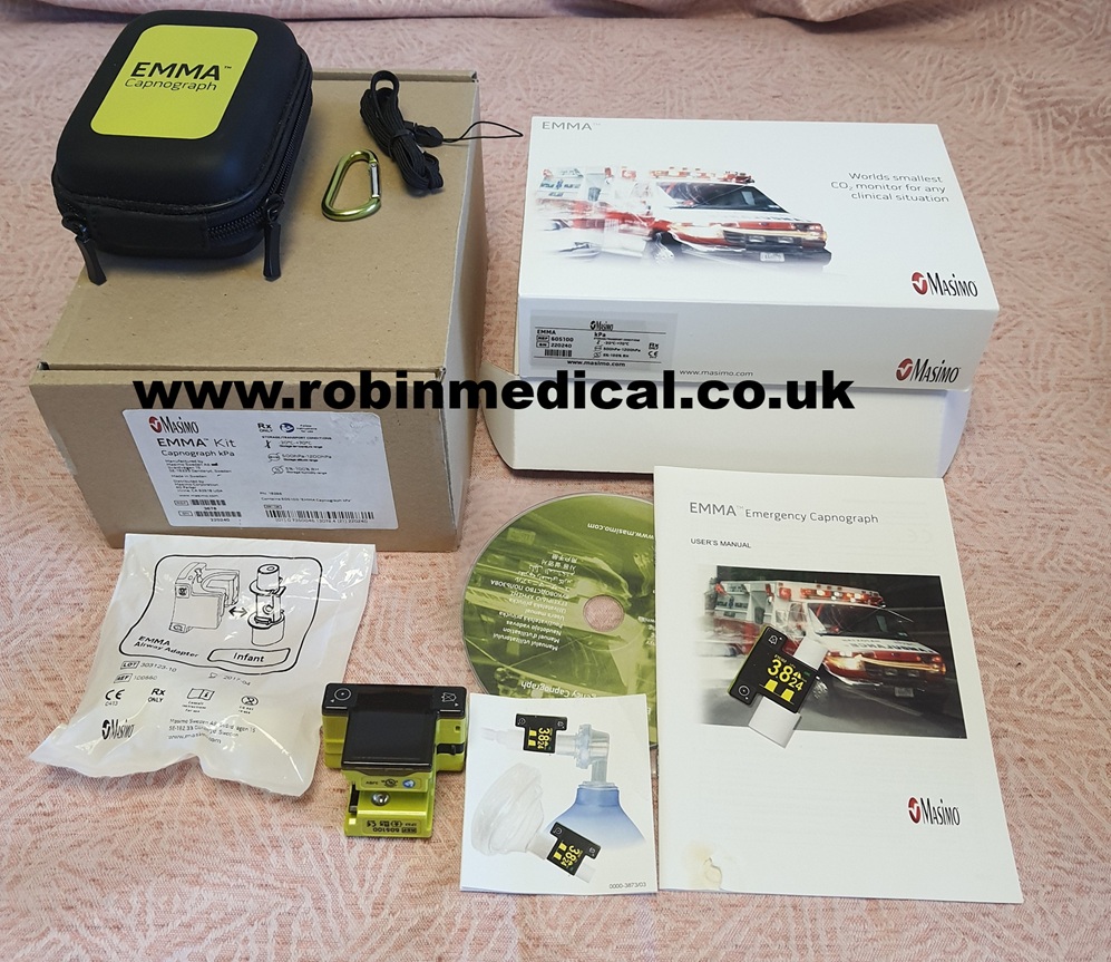 MASIMO EMMA portable Real-time Capnography (EtCO2) monitor, in excellent condition, in original packaging, its actual photos displayed.