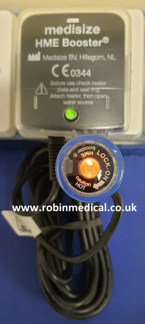 - A 4 meter long power cable connects the adapter to the heating element of the Medisize HME Booste