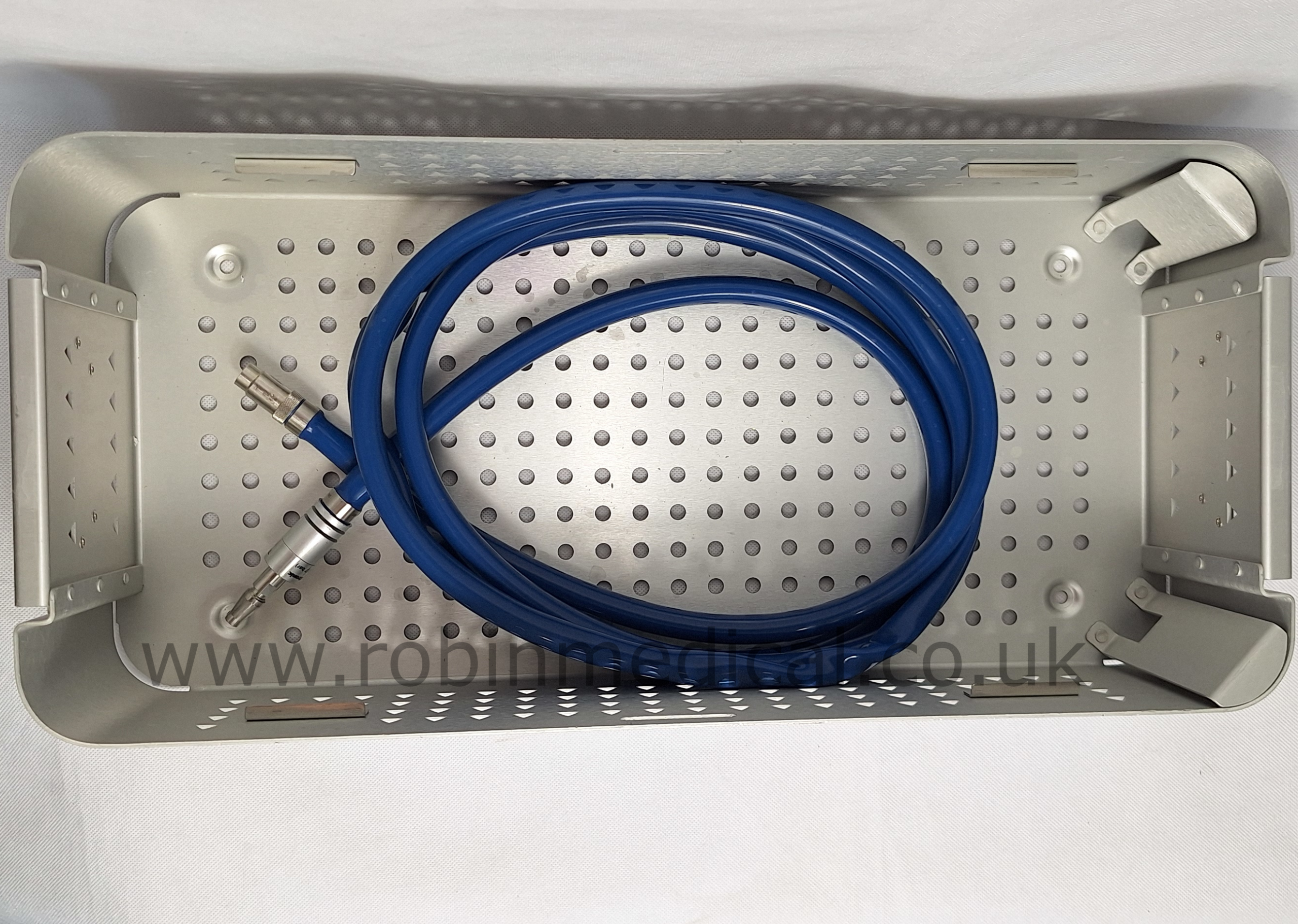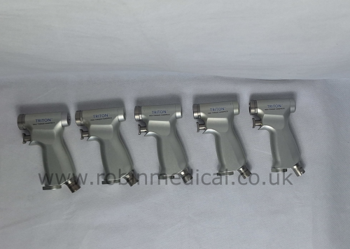 Medtronic Triton Orthospine Pneumatic Surgical Instrument Drill Set with 5 Attachments, Hose and sterilisation case, all in excellent physical and operational condition, their actual photos displayed.