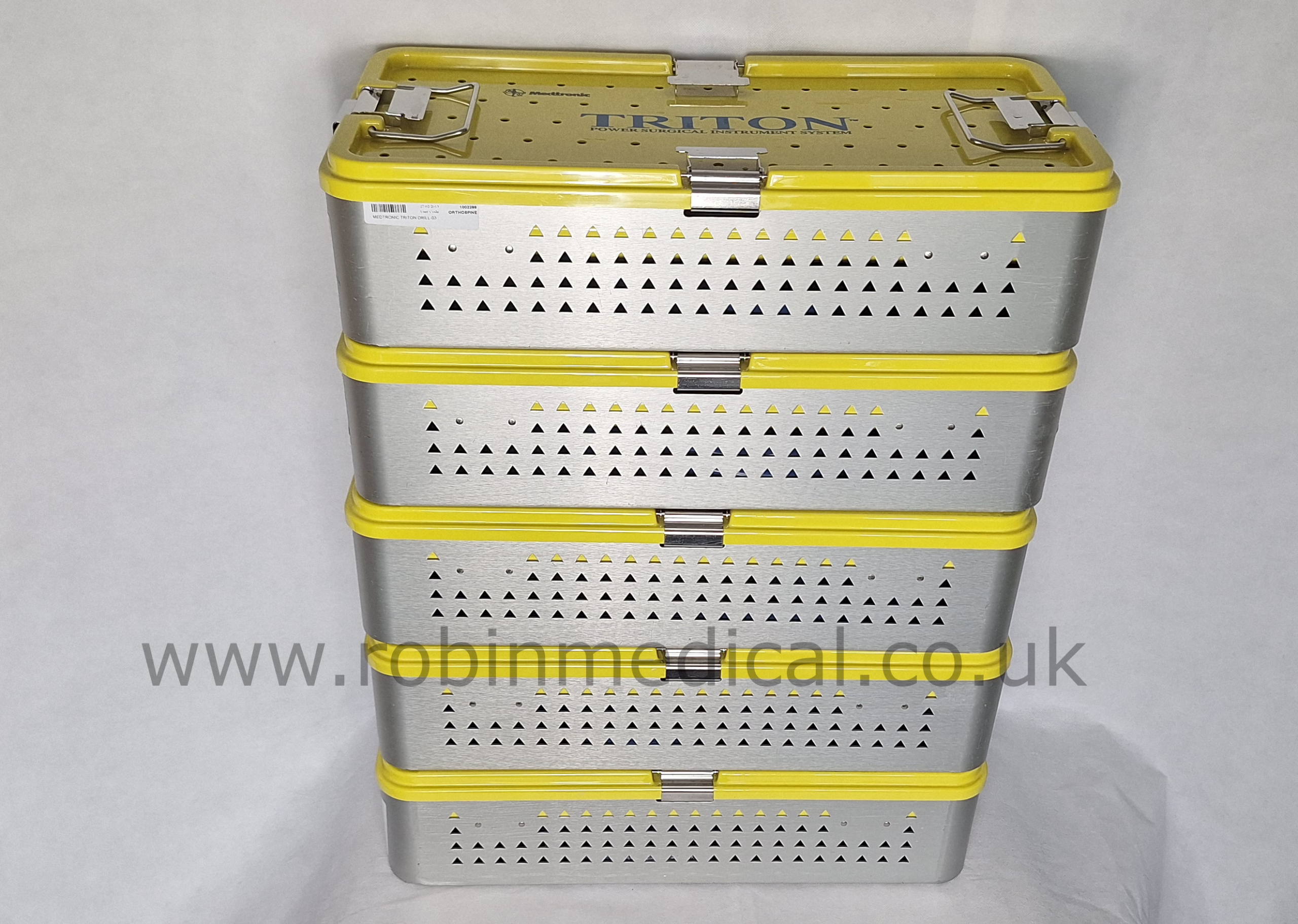 The Medtronic Triton Orthospine Pneumatic Drill Set is a high-performance, air-powered surgical system designed for a wide range of orthopaedic and spine procedures. This comprehensive set provides surgeons with exceptional power and control for tasks such as drilling, sawing, and pinning. The included handpiece and various attachments offer versatility in the operating room, while the pneumatic drive ensures smooth, reliable performance and sterile handling.