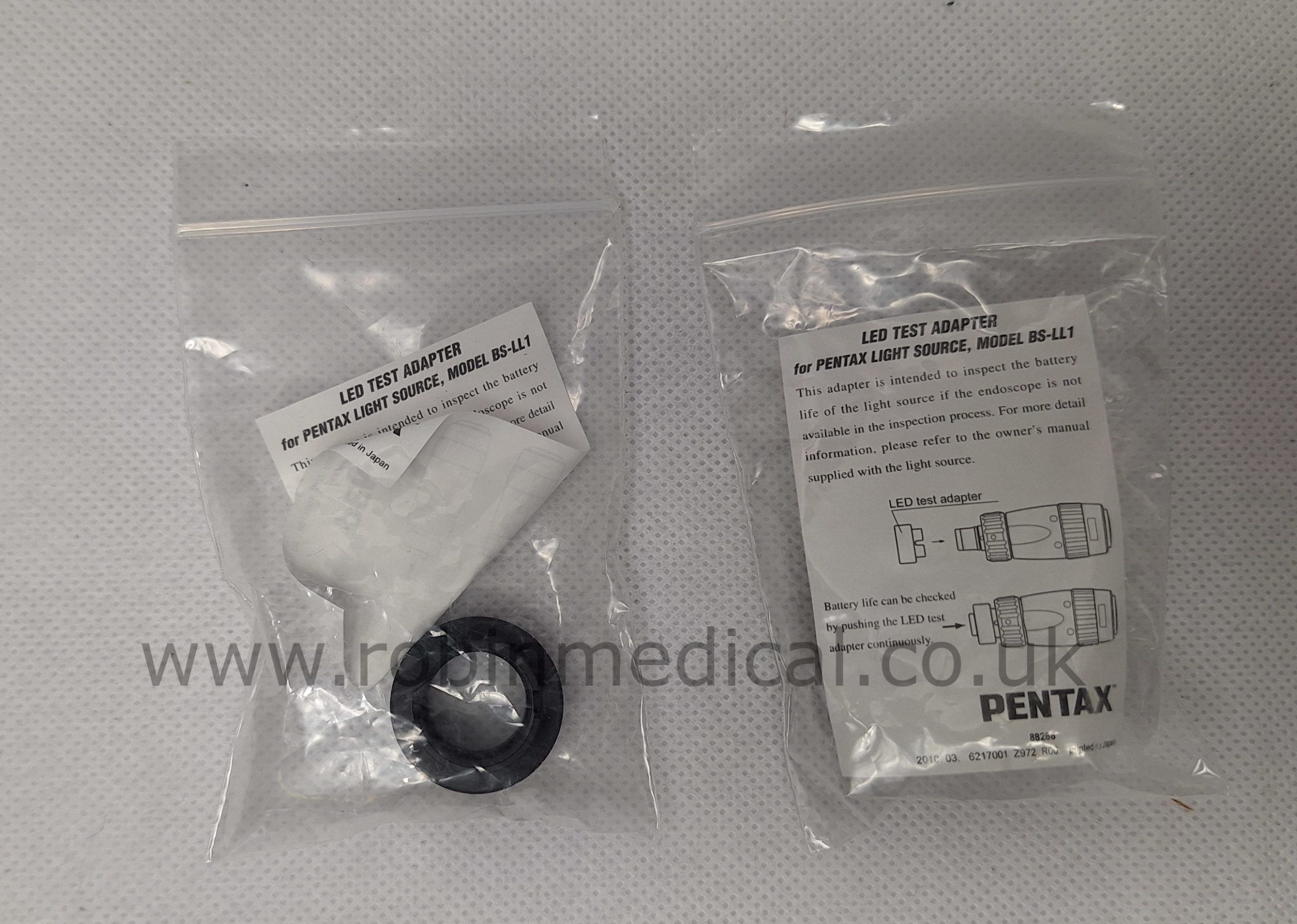 The Pentax LED Test Adapter for BS-LL1 is a diagnostic accessory designed to interface with the Pentax BS-LL1 LED light source. Its primary function is to inspect the battery life of the light source if the endoscope is not available in the inspection process. For more detailed information, please refer to the owners manual for the BS-LL1 light source.