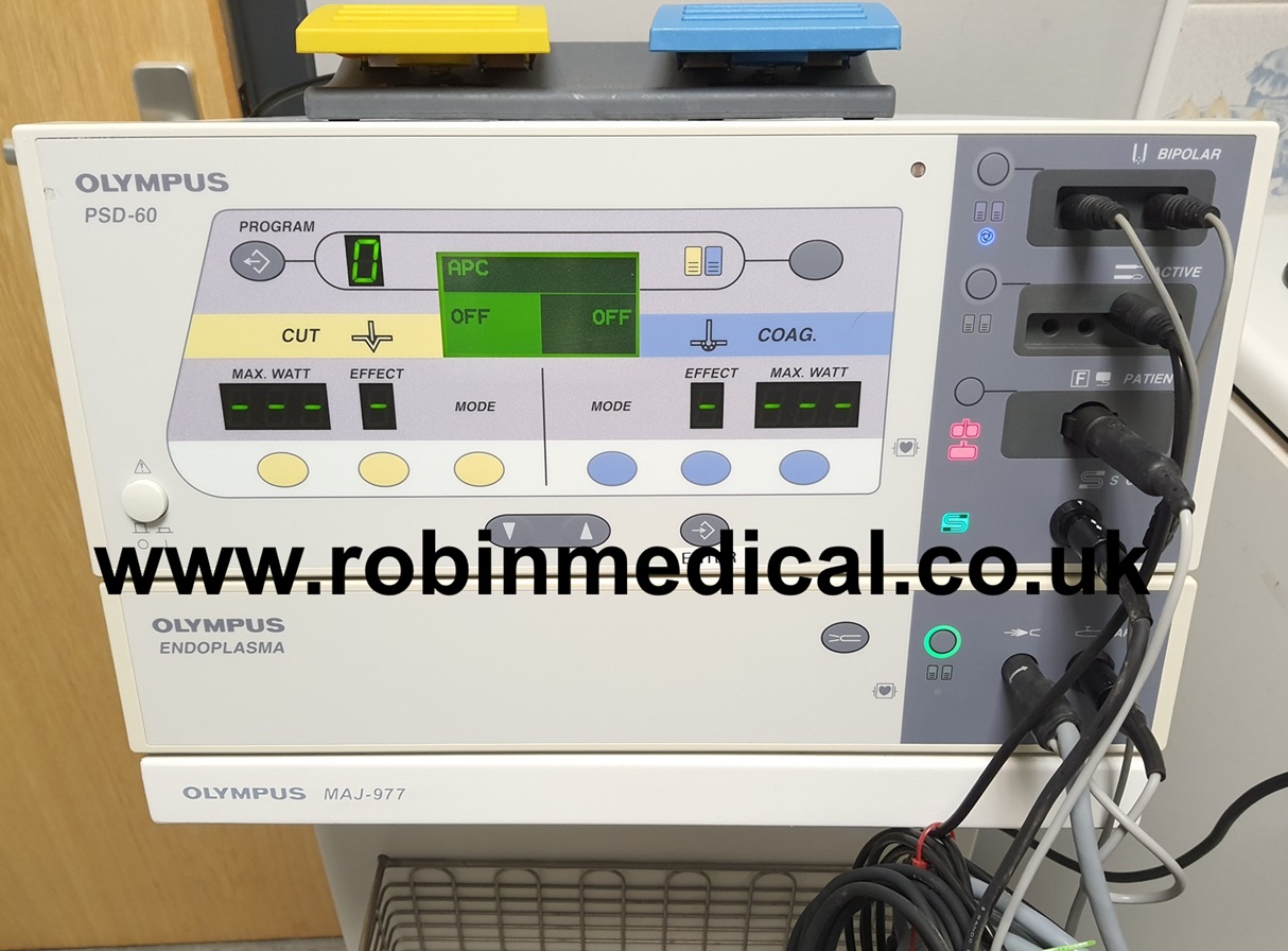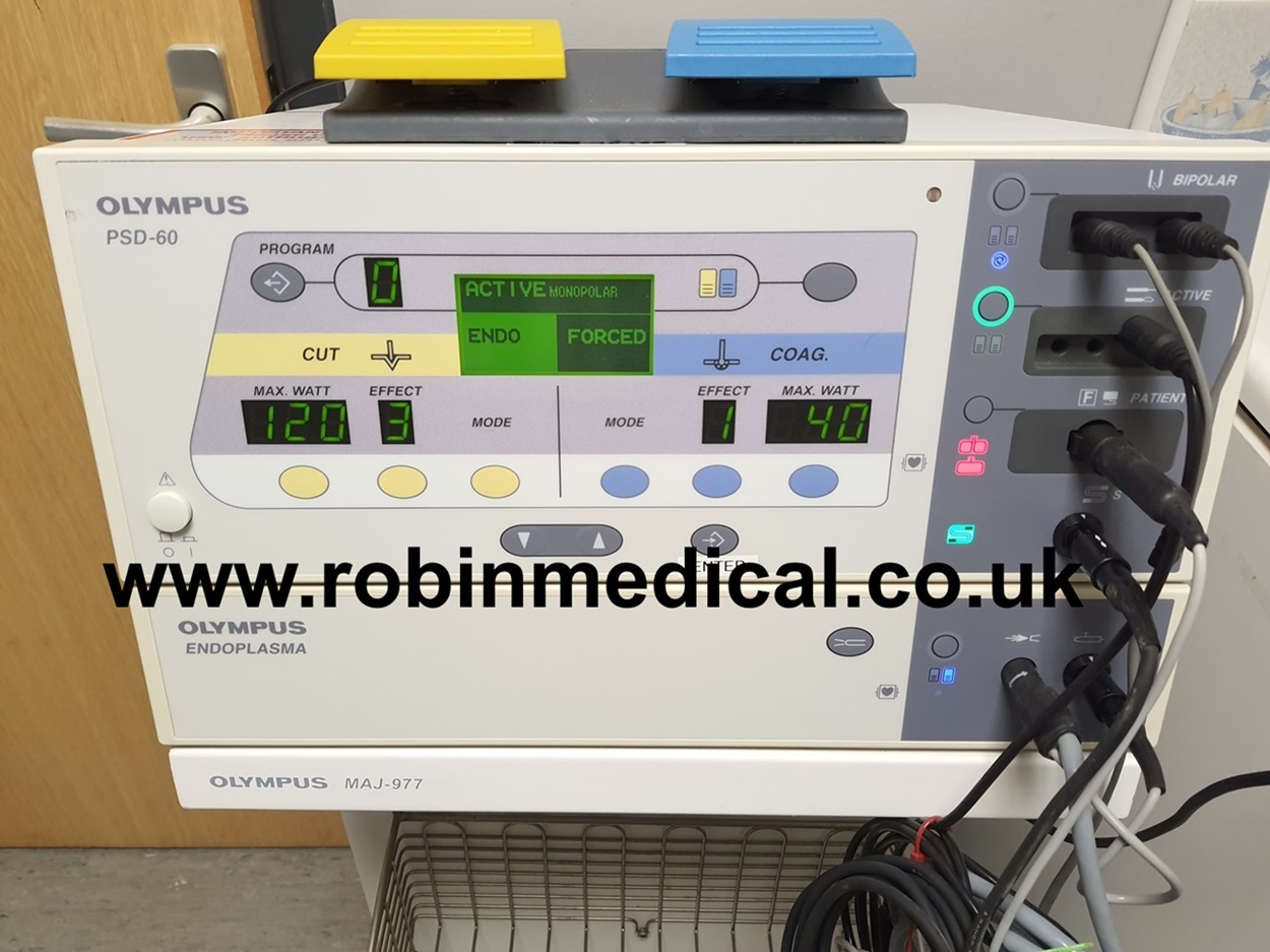 Olympus PSD-60 electrosurgical unit & Endoplasma Argon plasma Coagulation unit, in very good physical and operational condition, system’s actual photos displayed.
