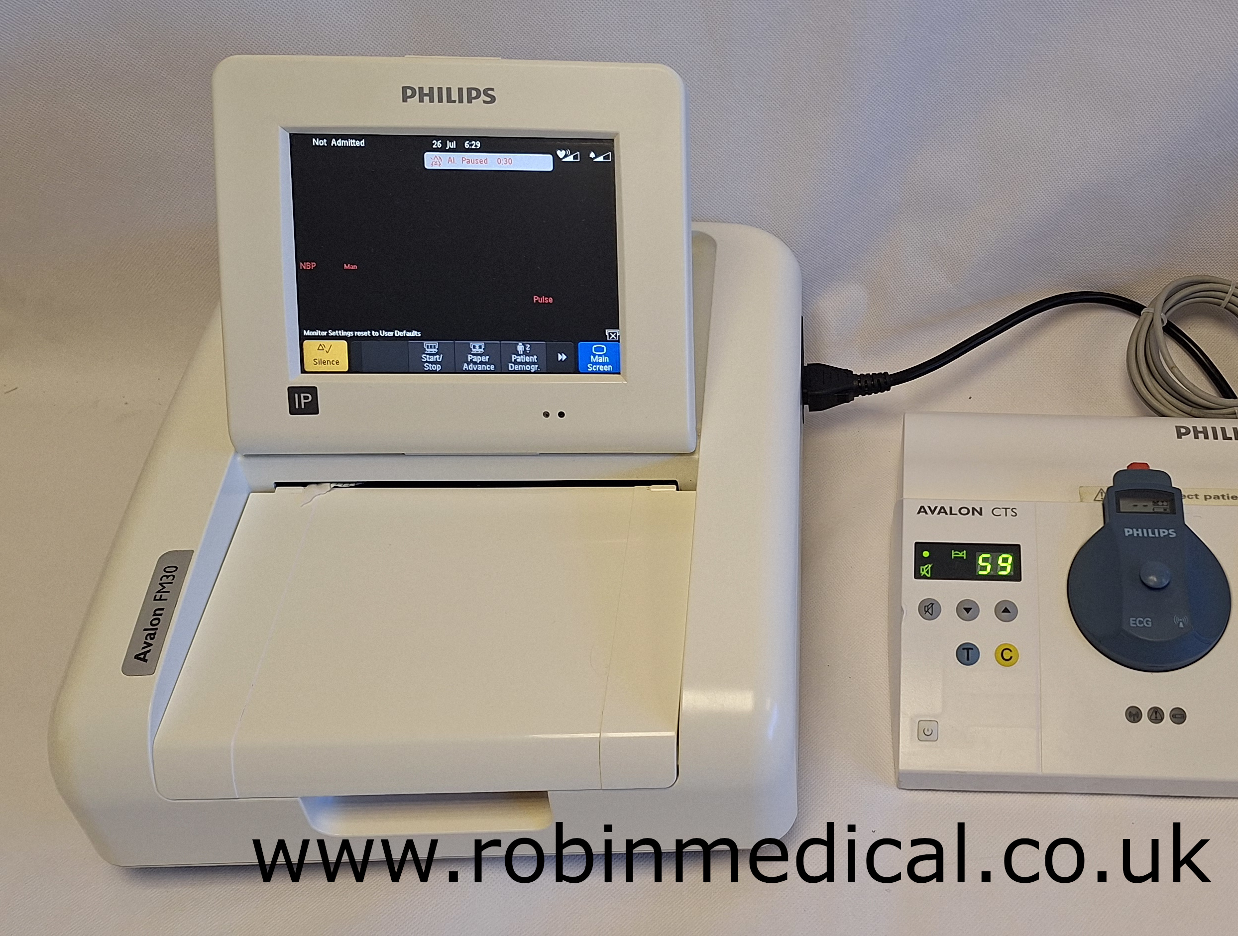 Philips Avalon FM 30 Foetal Monitor with CTS Foetal Transducer Base Station, including ECG, TOCO & Ultrasound Transducer, SpO2 and NIBP with printing functionality
