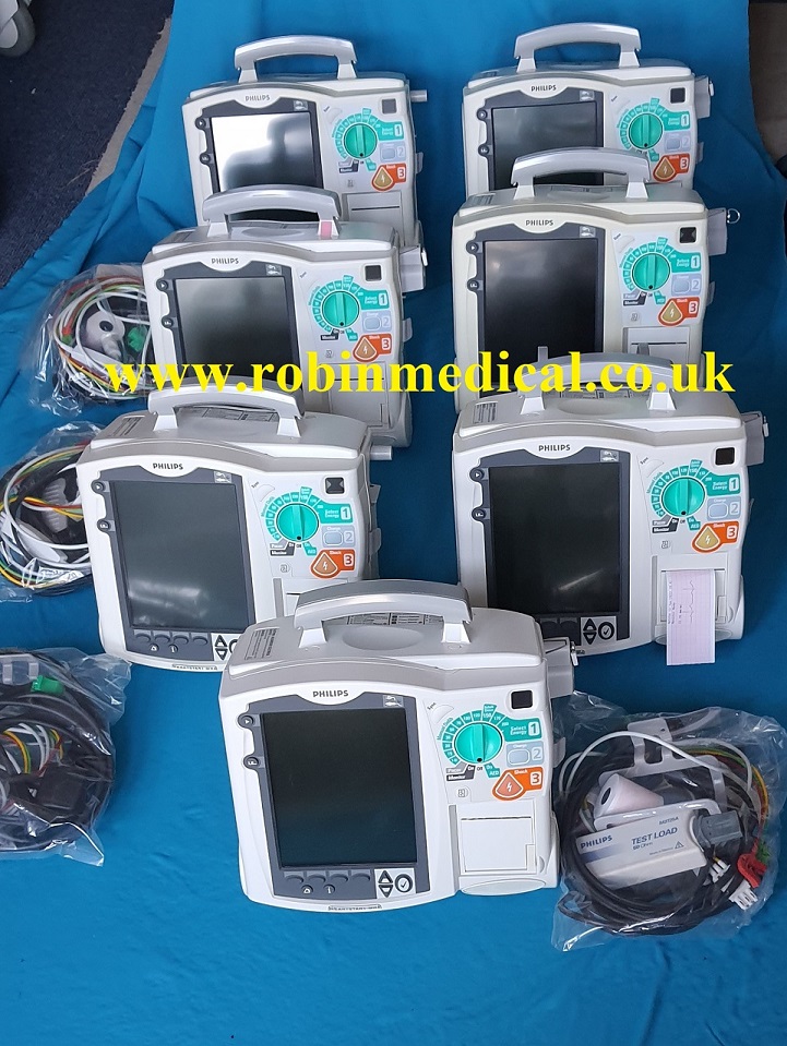 Philips Heartstart MRx Biphasic defibrillator, AED/Manual with pacer, all in very good physical and operational condition, photos for one of the units displayed.