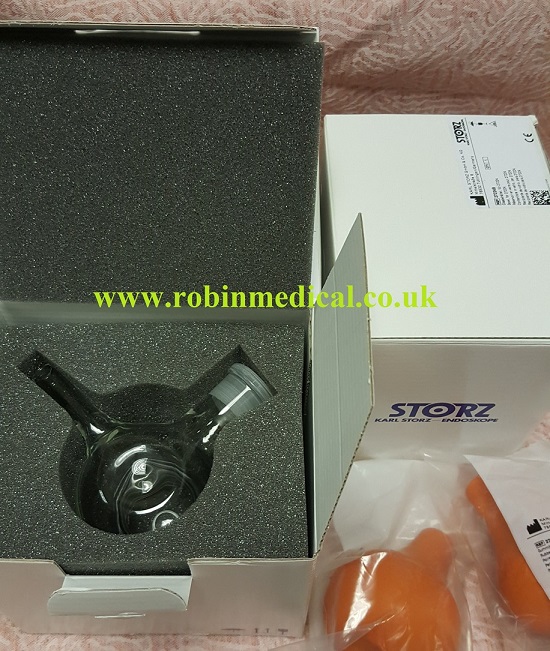 Storz Ellik Evacuator set (Glass Bowl Ref: 27224B and Rubber Bulb 27224C), all in New condition, their actual photos displayed.