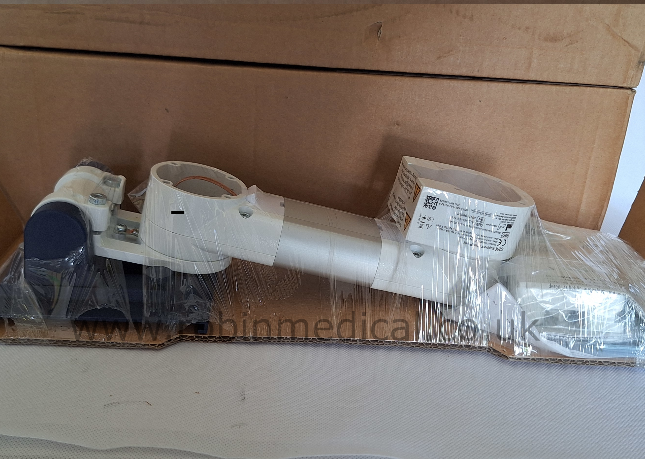 Philips Support Arm Pivot Grounded 240. This Support Arm Pivot with 5-inch Plunge Plate Adapter is designed for secure mounting and versatile positioning in vertical wall channel systems. Engineered for stability and smooth pivoting action, this component is ideal for medical equipment installations requiring precise adjustability and grounded safety features.